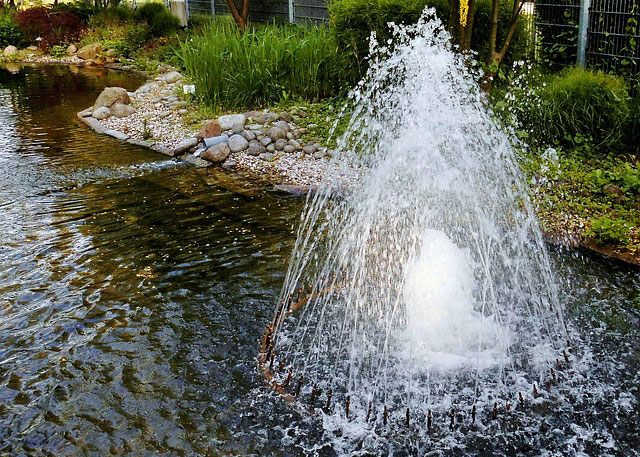 Besonders im Sommer spriessen die Grünalgen. Wenn das Wasser sich erwärmt und der Sauerstoffgehalt schwindet, stören sie das sensible biologische Gleichgewicht. Vermeiden lässt sich dies mit einem nicht zu flach angelegten Teich; ein Filtersystem hilft zusätzlich, das Gleichgewicht (wieder) herzustellen und allfällige Grünalgen herauszufiltern.
